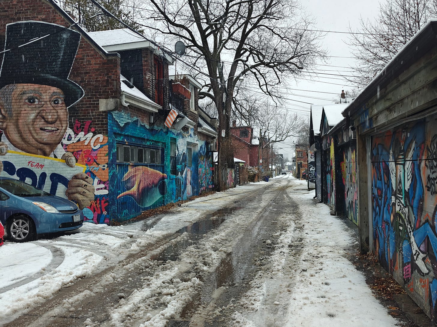 slushy back lane this week, behind Brunswick Avenue, Toronto