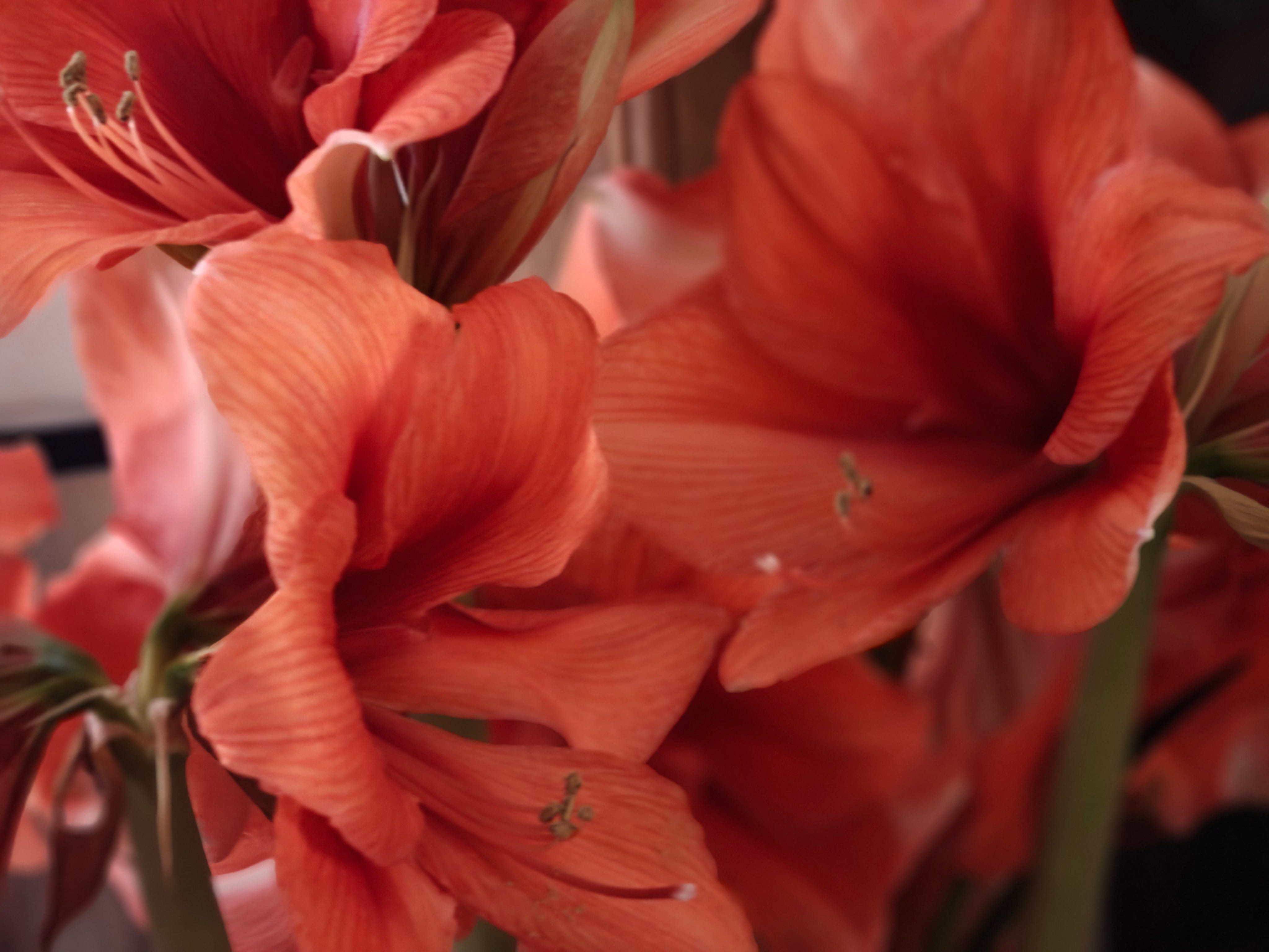 close-up; I am very grateful for all the flowers people brought to the house after Tashi died; the loveliness continues with this huge pot of amaryllis from Mika at The Good Egg