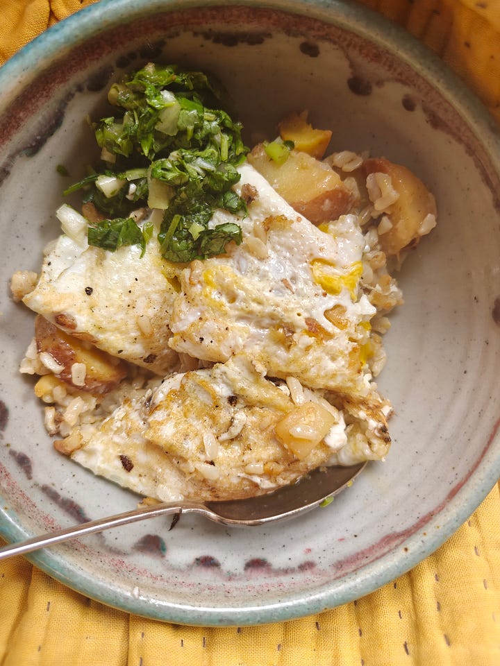 WITH MISO-BROTH FISH, FRESH CHUTNEY, AND A FRIED EGG QUESTION
