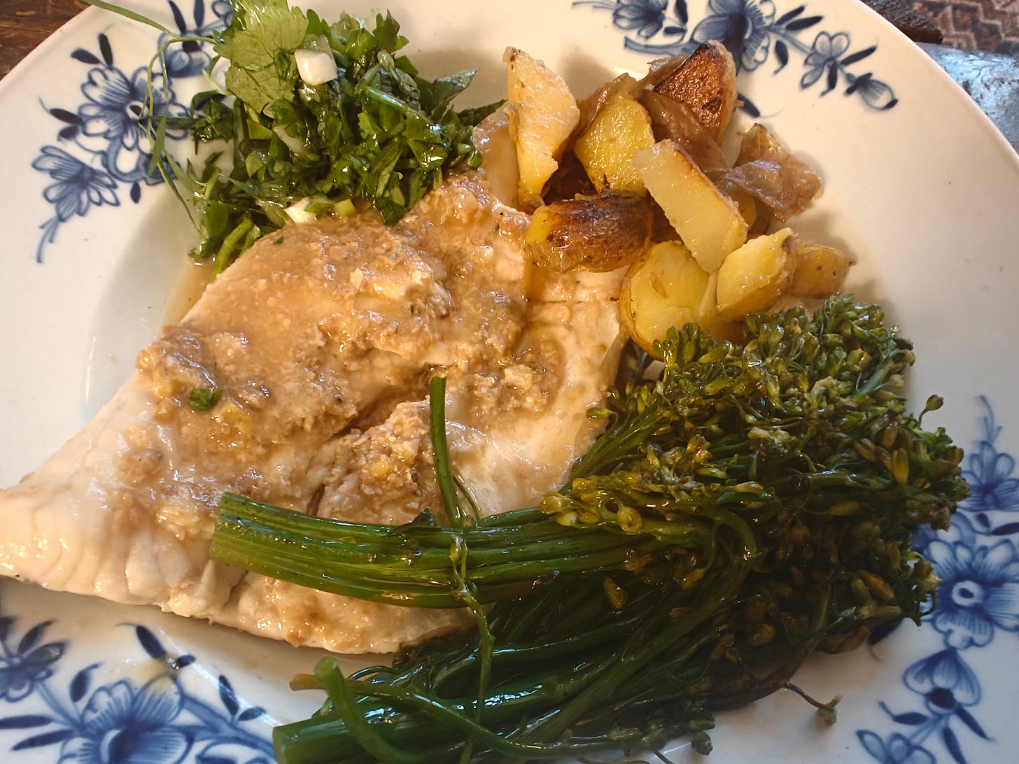 The fish was delicious and perfectly cooked. I’d tried the miso broth technique with chunks of halibut a few weeks ago, but even with that proof of concept, I was relieved it worked well with the fillets. None of this is rocket science, I know, but fish can be intimidating, rather like pastry, because it feels easy to mess it up.