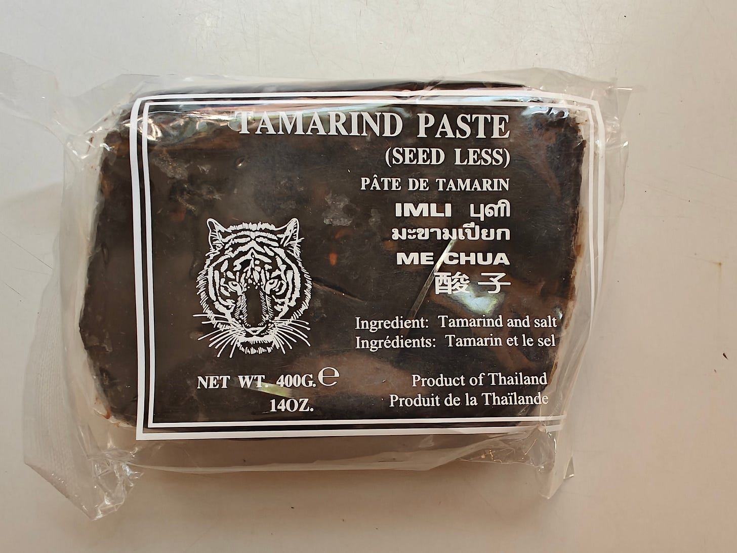 Last week I bought a cellophane-wrapped block of tamarind from Thailand that looked like tamarind pulp but was labelled “tamarind paste.” It was raw tamarind pulp, aromatic and fresh-tasting, that had been deseeded. This is a great new-to-me version of tamarind. The choice used to be between tamarind paste, easy to use but chemical tasting (I always advise people to avoid it), and tamarind pulp with seeds, which needs a little effort to process into tamarind liquid.