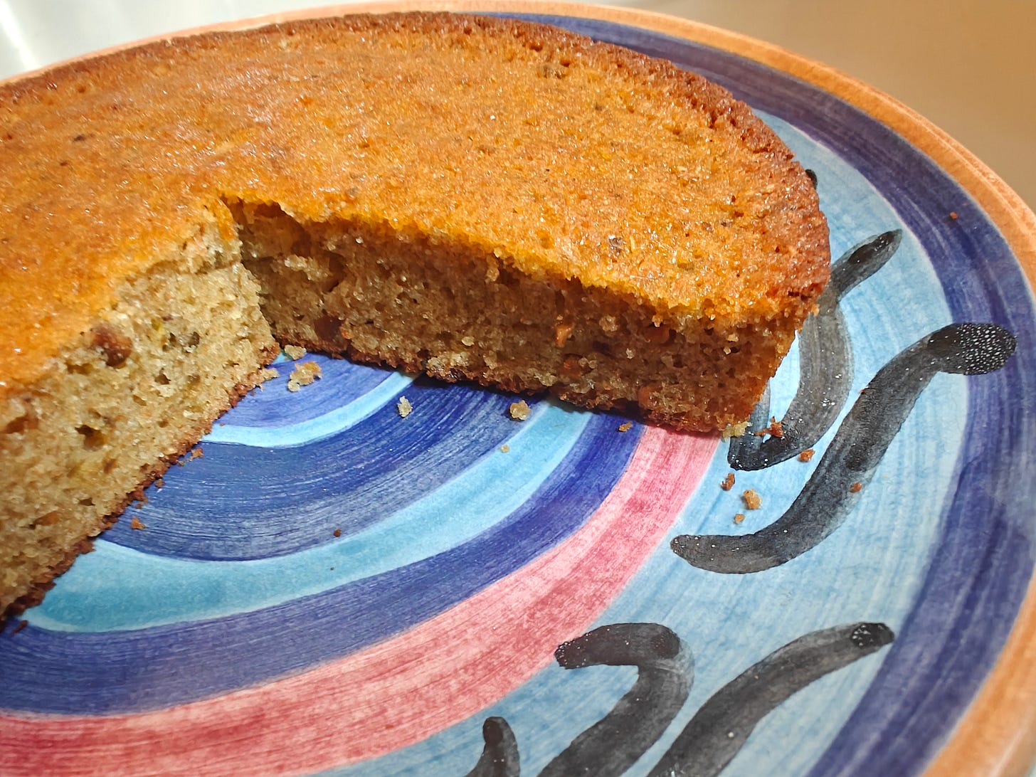 I loved the feeling of freedom I felt while making those cakes. It was as if a weight of responsibility, debilitating inhibiting responsibility, had lifted itself off my shoulders and mind. Why? How? The passage of time perhaps. Maybe also I’m somehow better able to disregard normal expectations? There was no anxiety about the outcome. Of course I cut a small slice off both versions of the cake, to check it. But I wasn’t worried about it.