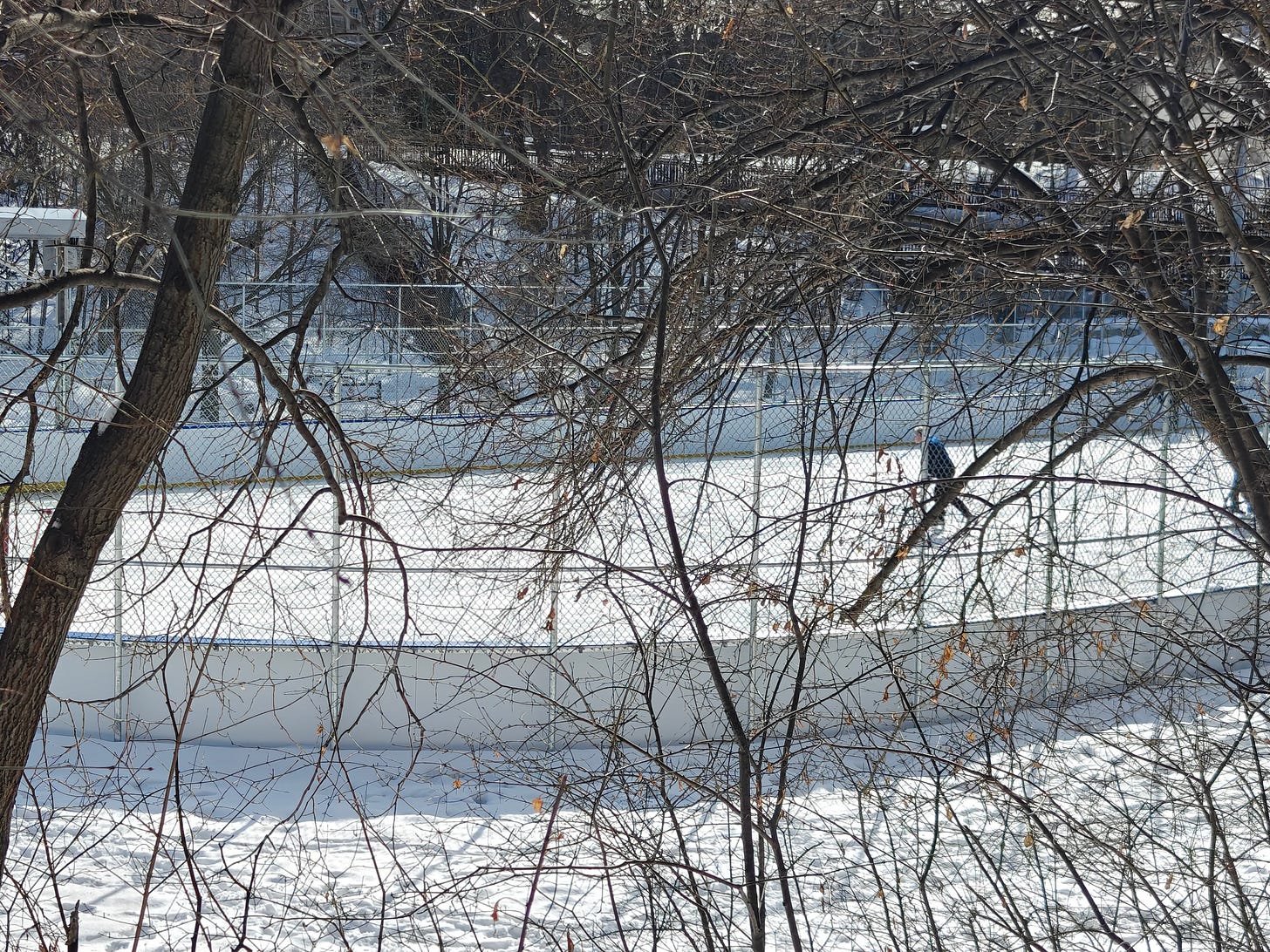 a glimpse of the hockey rink at Ramsden Park, as I walked to a meet-up with friends