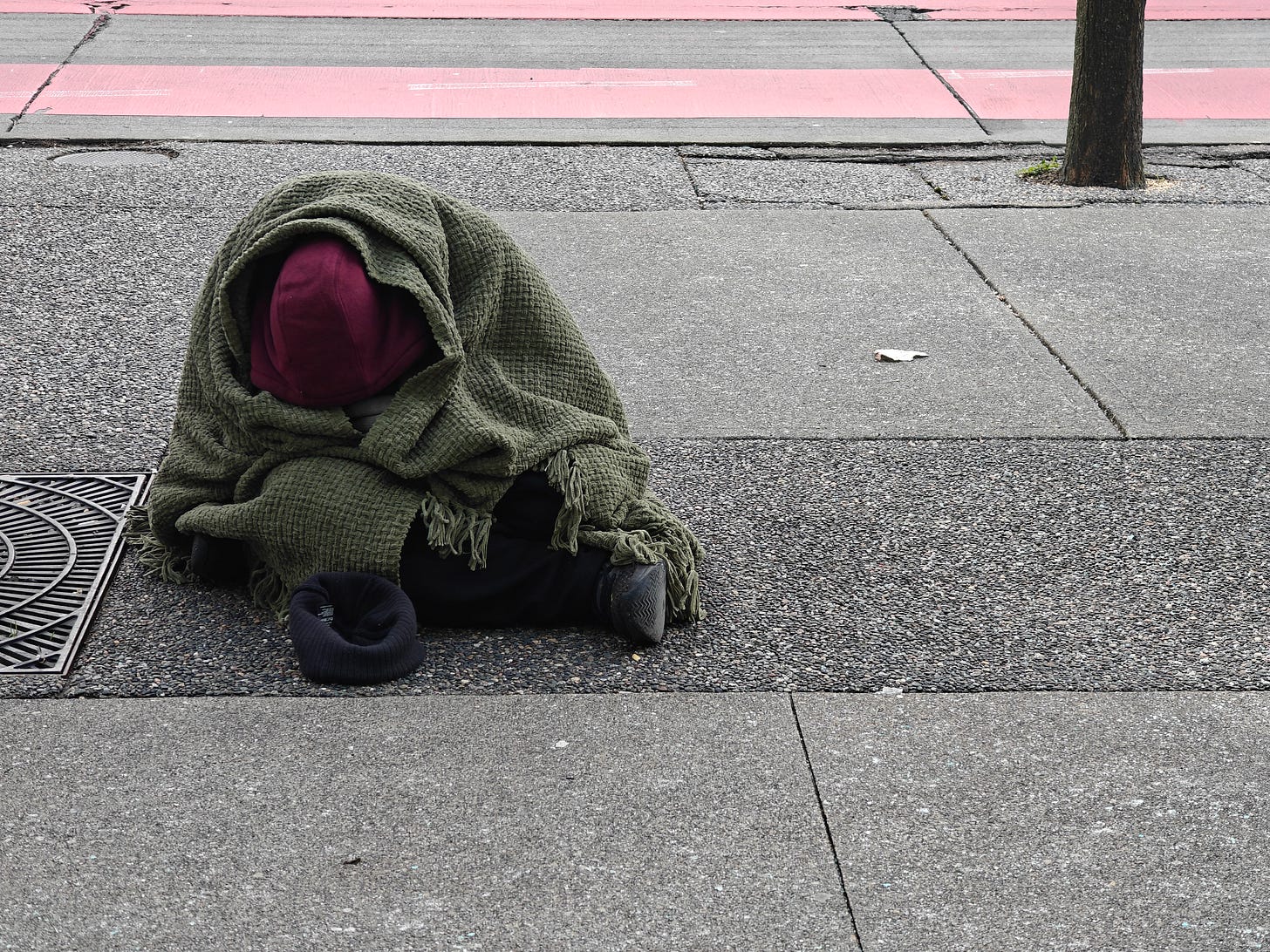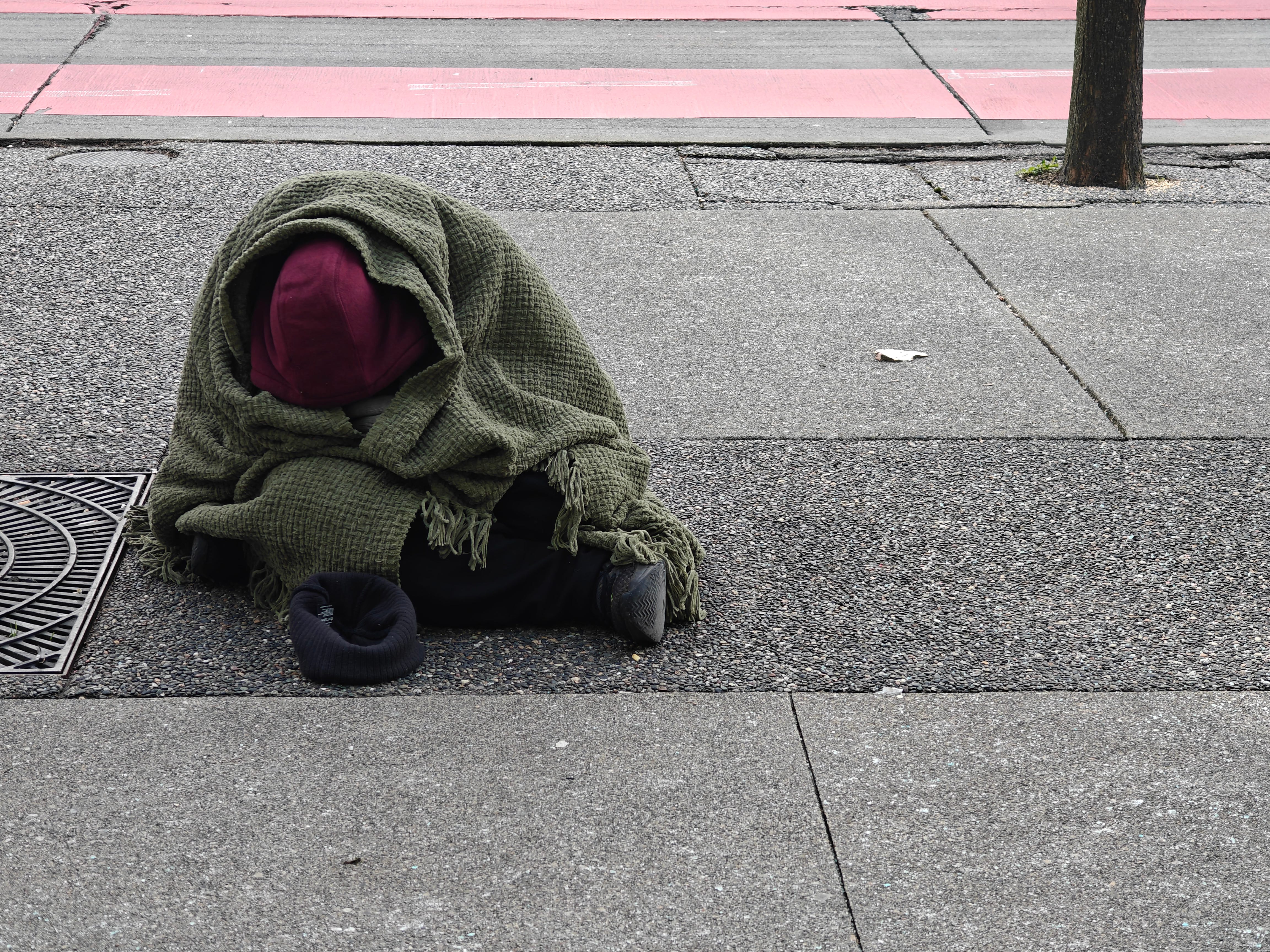 someone to grieve for right now; an unidentifiable street person on West Broadway in Vancouver