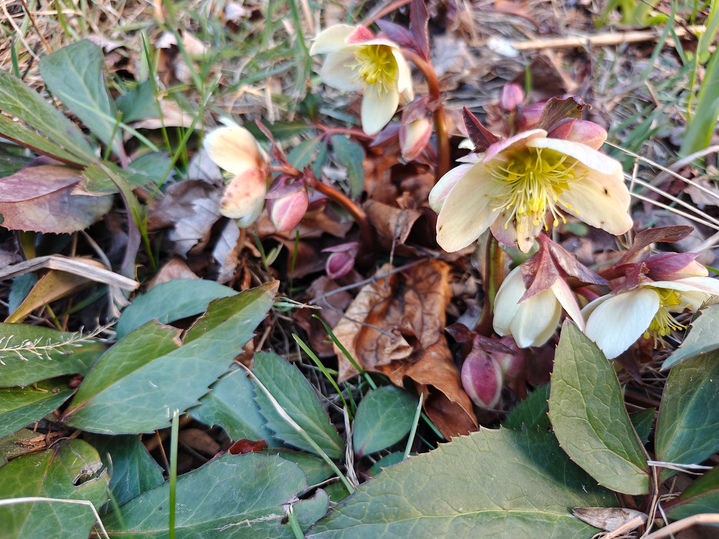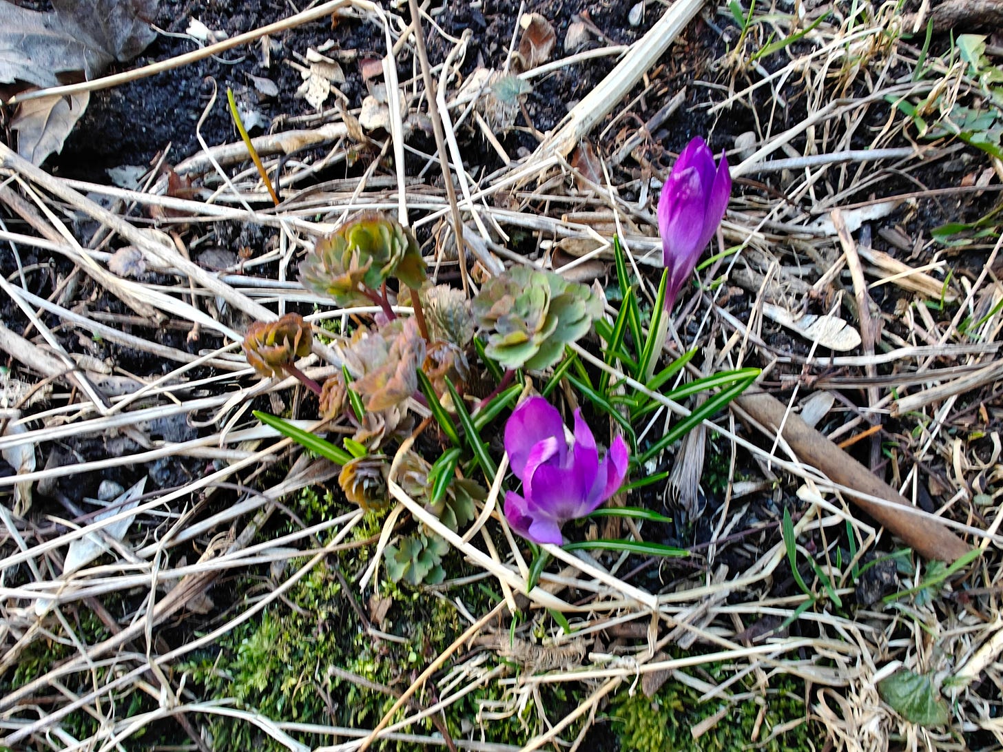 crocus and first columbine leaves in the garden yesterday