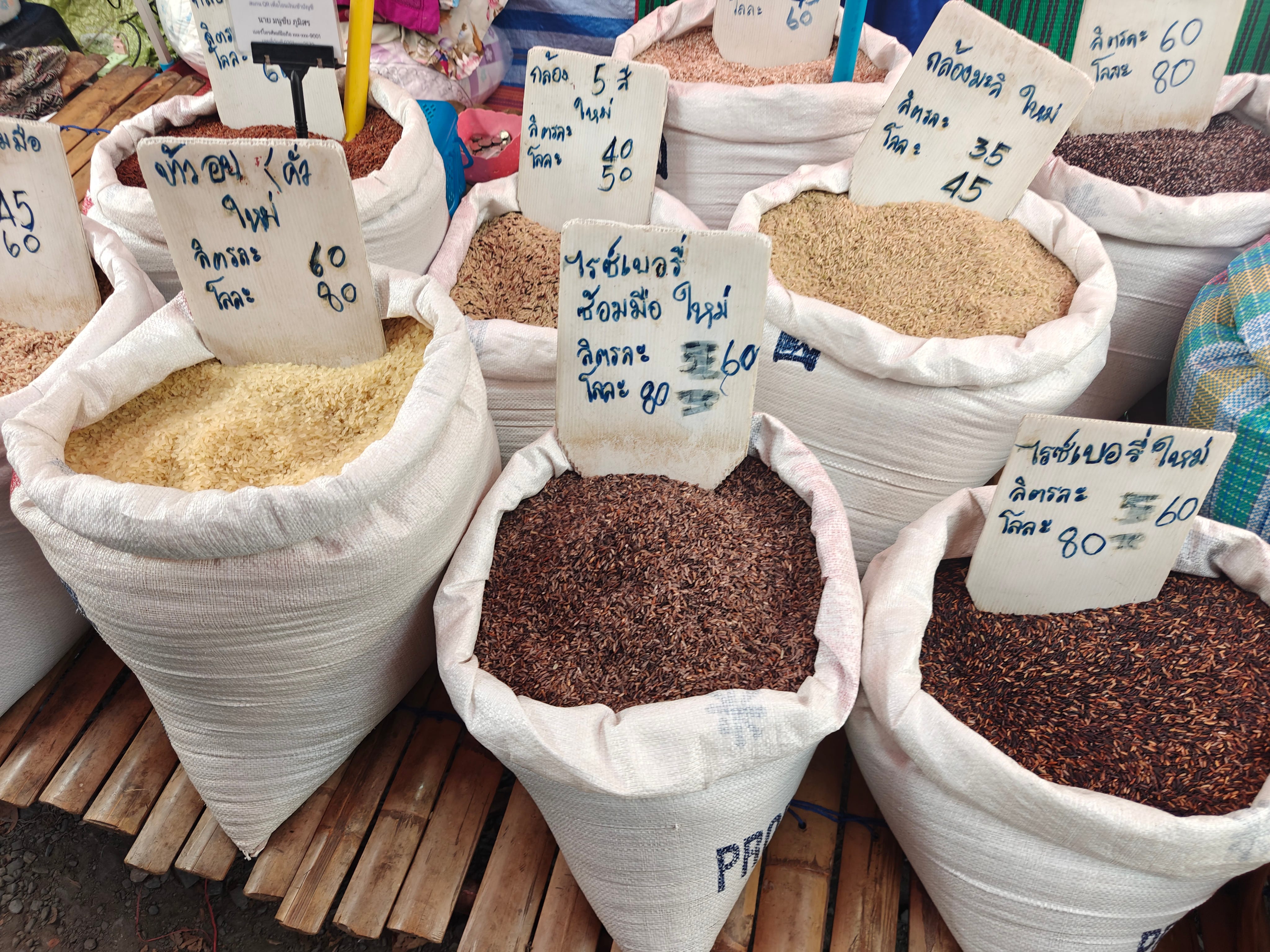 rice landscape: many mountain rices being sold at the Yunnan market on Fridays