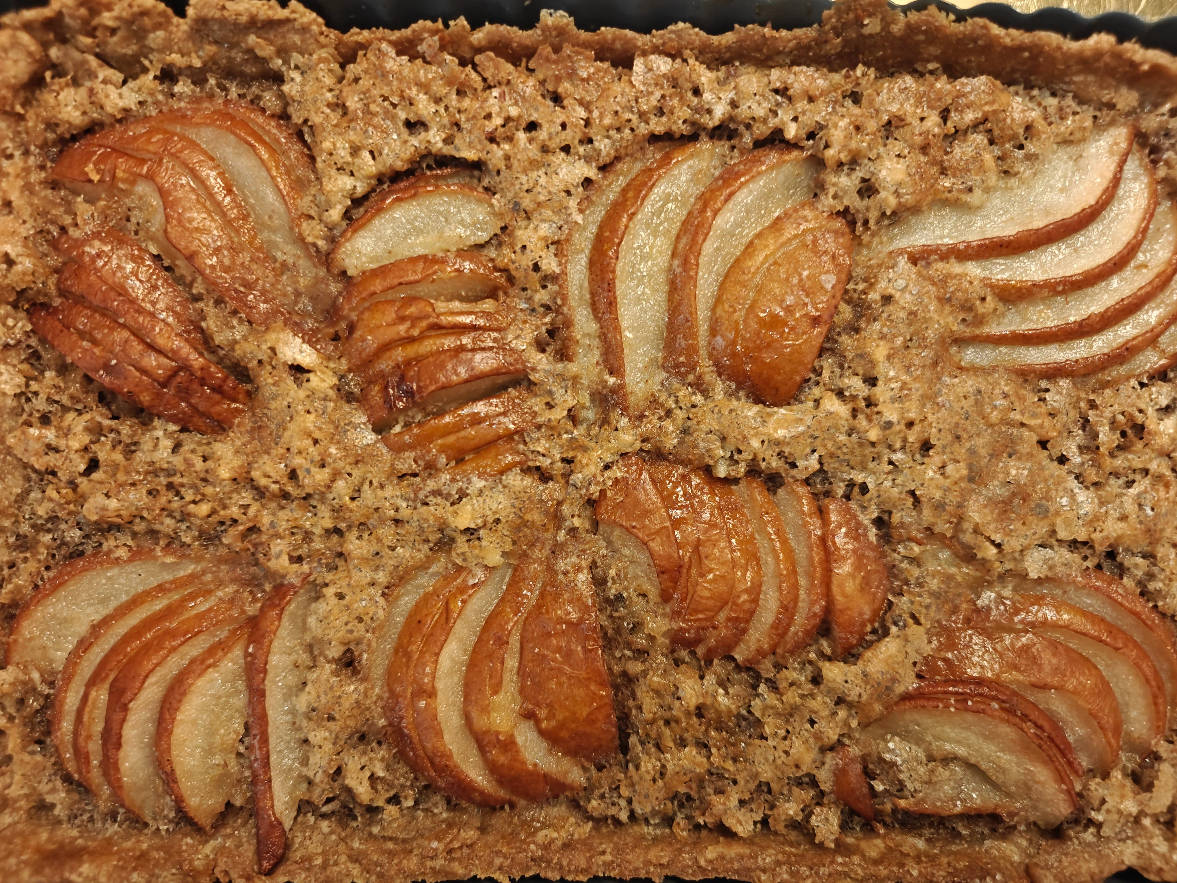 frangipane made from Ontario-grown hazelnuts; local pears; whole grain Maris Widgeon flour