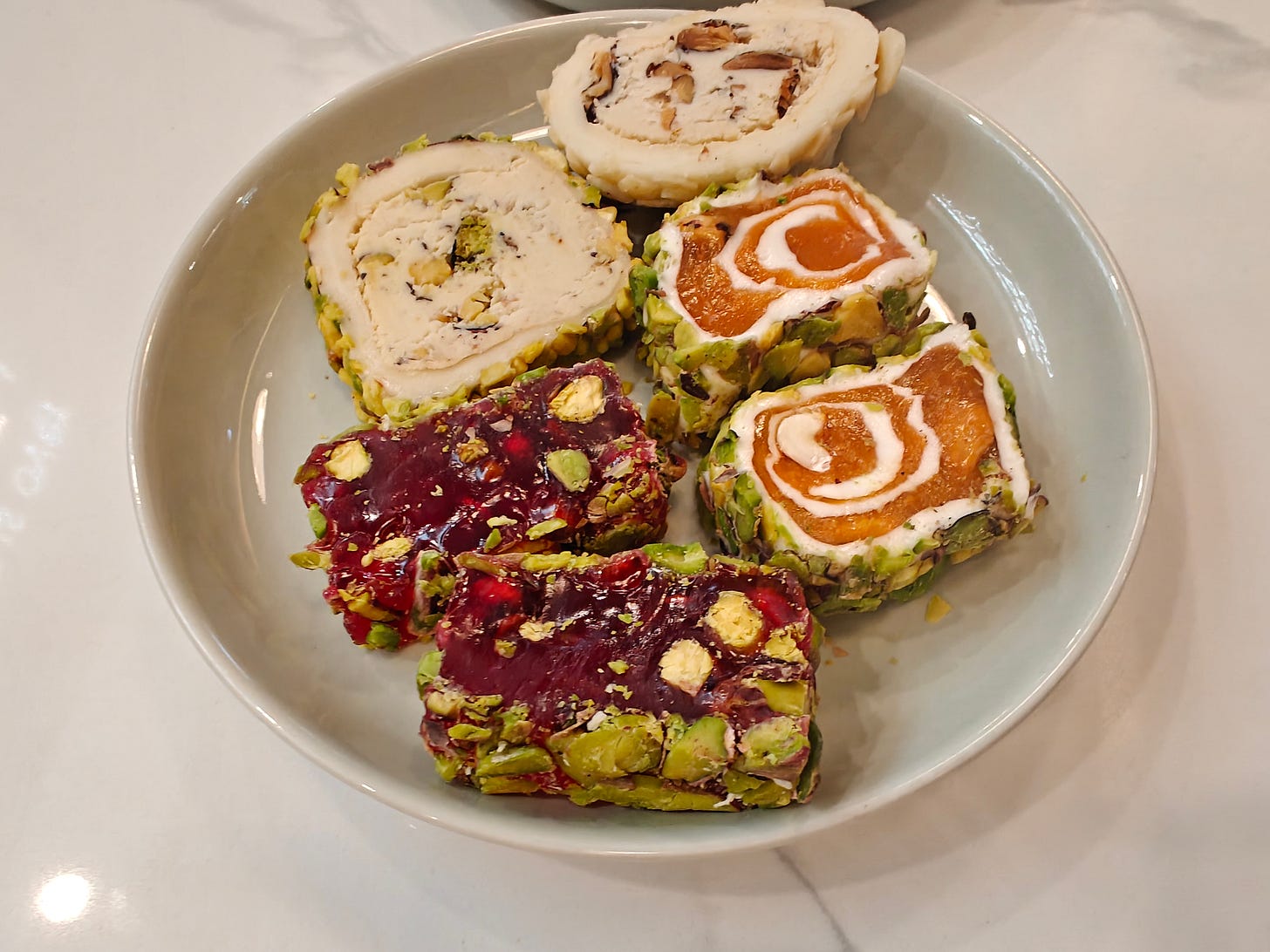 Almost every week since May 2020 I have gone for a long walk with a small handful of friends, people I’ve known for years. Once Covid restrictions eased, we added lunch at some quirky small place to our walk. These jewelled Turkish sweets were part of a coffee stop we made this week at Simit Chi on Bloor.